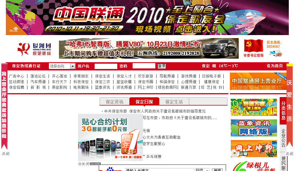 保定熱線是以廣告中心,蓮池論壇,開心蓮池,非常朋友, 快遞公司,家政服務(wù),醫(yī)療衛(wèi)生,保定美食,火車售票,汽車陪練,汽車美容,汽車銷售等為主的門戶網(wǎng).